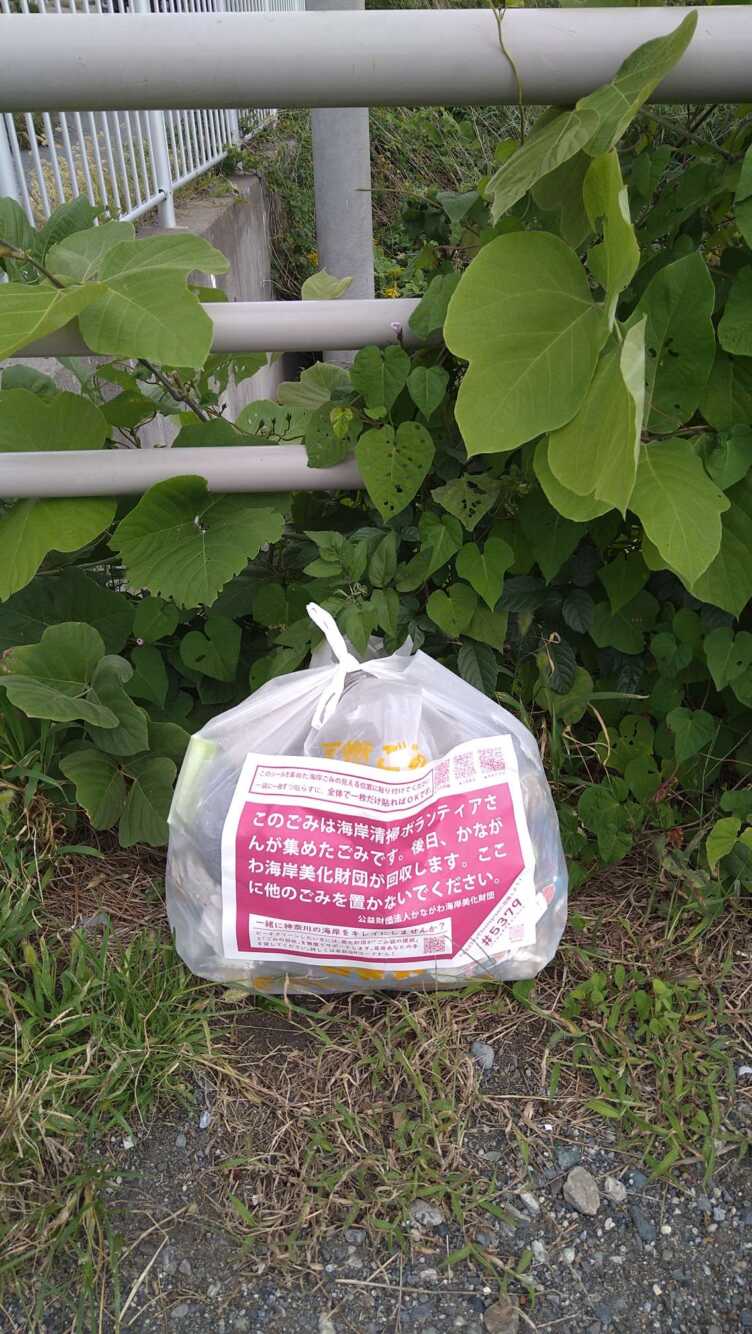 今回も虹ケ浜をビーチクリーンをしました。海岸付近に行くと木くずが帯状に広がっていて、その中にプラスチック片やビニールゴミやペットボトルのキャップが混ざっていました。今日は南風が強かっため、これらの小さいゴミを拾って袋に入れるのがとても苦戦しました。今回は可燃ごみ1袋分でしたが次回こそはもっとたくさん拾いたいと思います。