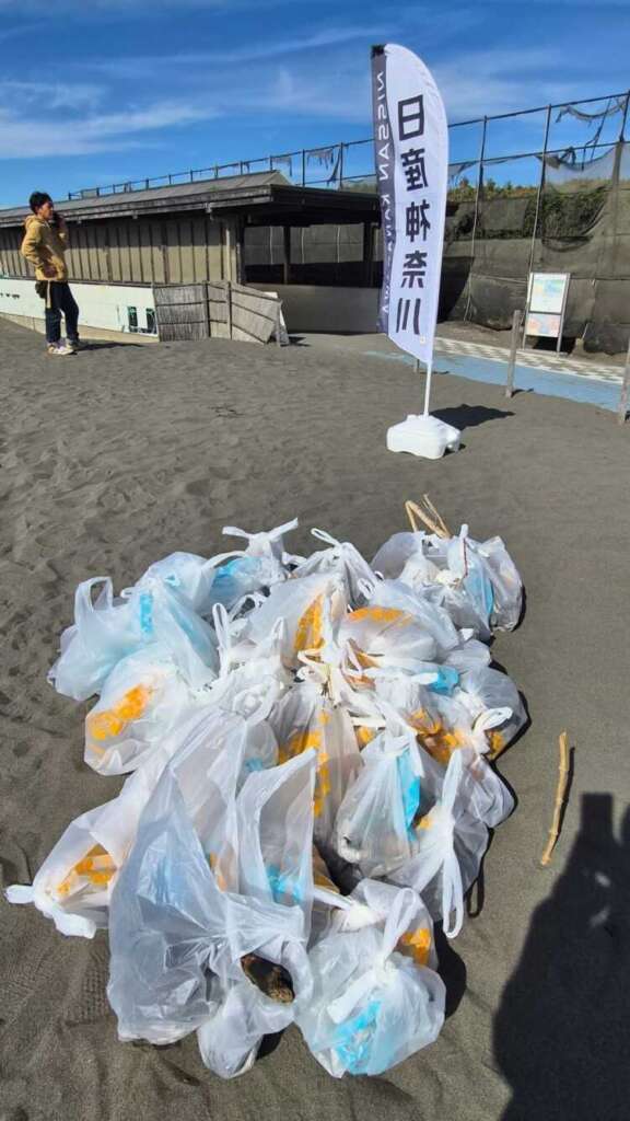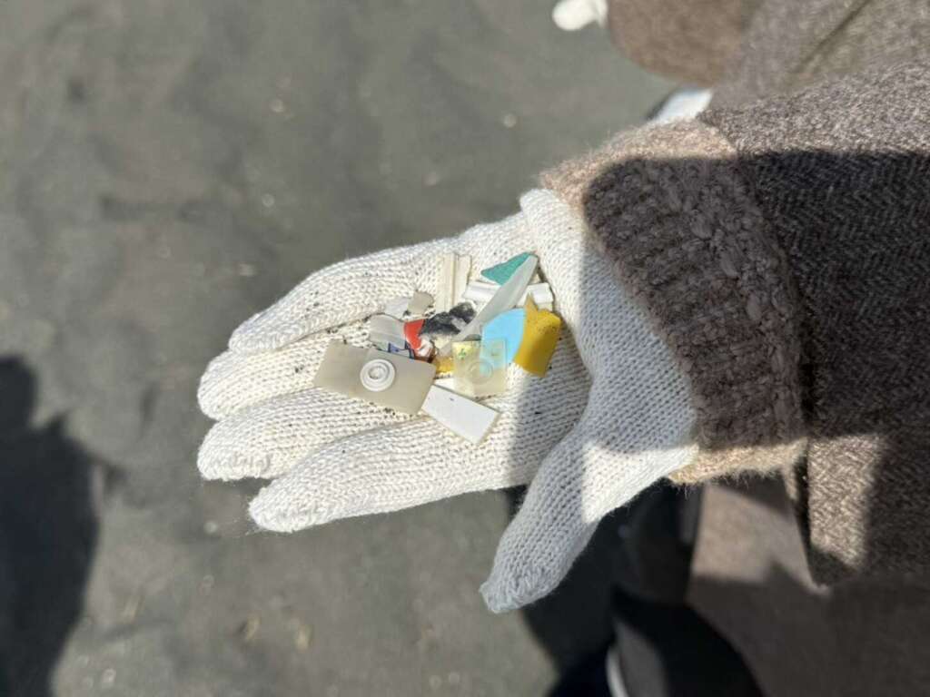 当日は社員およびその家族が参加し、砂浜に散在するペットボトルの破片やストロー、細かなプラスチック片などを丁寧に回収しました。